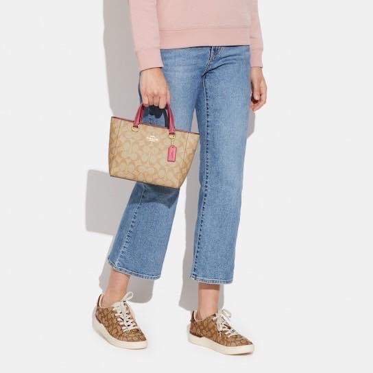 - Detachable strap with 22 1/2″ drop for shoulder or crossbody wear
