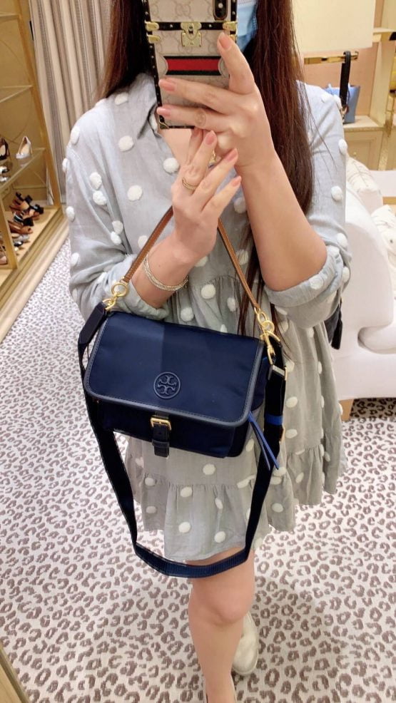 - Your trip is all you can think about so prepare with the chic Tory Burch® Perry Nylon Crossbody bag feature a top carrying handle and detachable, adjustable crossbody strap.